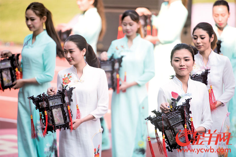 昨日廣府廟會(huì)的一景。這種打扮與所持宮燈式樣,明顯是現(xiàn)代導(dǎo)演對傳統(tǒng)的發(fā)展與模仿,但也可能形成新的民俗 記者 周巍 攝