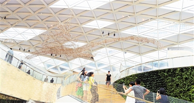 長20米,重300公斤,一件由40個部件構成的、形如飛鳥的大型裝置作品懸掛在新近開業(yè)的華潤萬象天地穹頂。這是日本藝術家北山善夫為萬象天地量身打造的藝術作品《無形》,特別值得一提的是,如此巨大的作品,是由藝術家用竹枝和紙,耗時數(shù)月純手工制作完成。北山善夫說:“我生命的意義不在于作品本身,而是在制作這些作品的過程中?!?/p>
