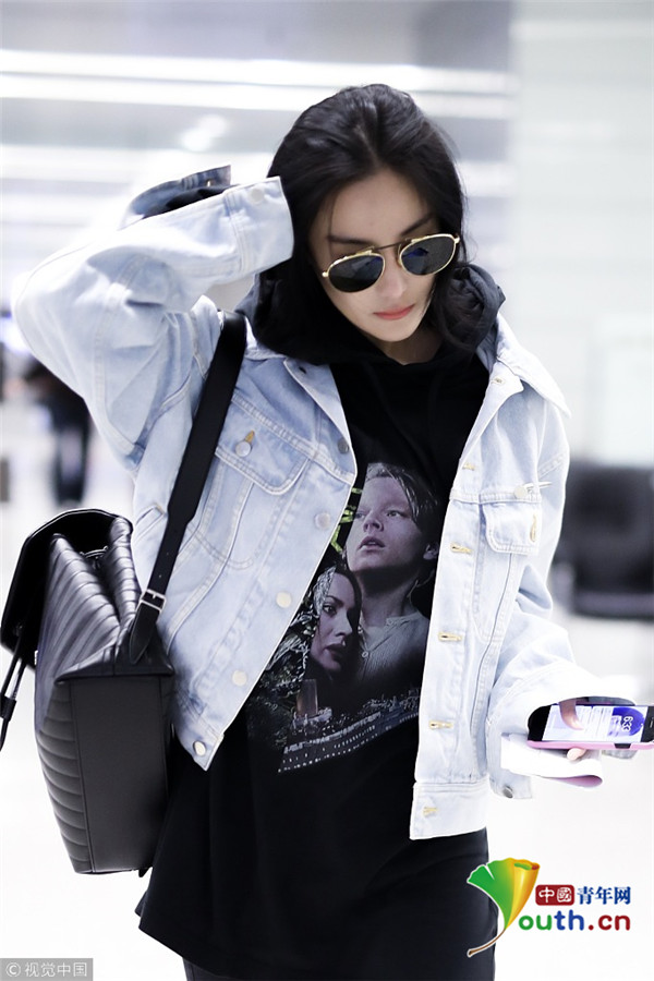 2017年12月13日,上海,張馨予現(xiàn)身機場,穿連帽衣顯清爽,剪短發(fā)架黑超形似王菲,歪頭撩發(fā)又帥又酷。