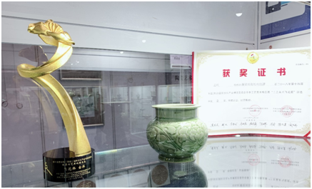 現(xiàn)場(chǎng),這位陶瓷世家的年青一代為記者介紹了本次冬季文博會(huì)中帶來(lái)的象征耀瓷的不同時(shí)期,不同風(fēng)格的多種器件,包括耀瓷刻花蓮荷紋佛經(jīng)缽、紅底玉縷耀瓷刻花飛龍寶塔尊、耀瓷刻花牡丹紋方肩梅瓶等陜西耀州窯代表性作品,也各具不同藝術(shù)風(fēng)格與特色。