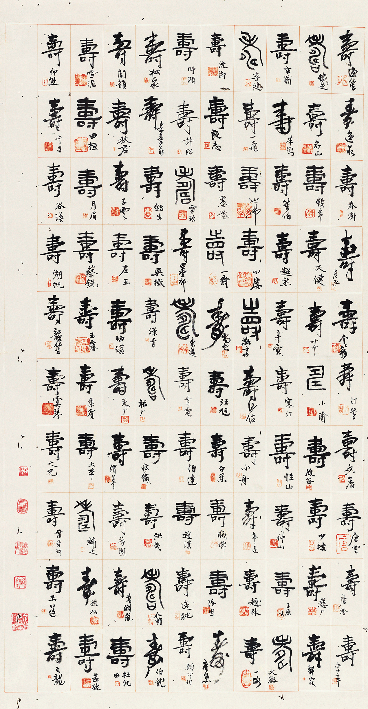作者:眾書法家、海上名家 作品名稱:百壽圖