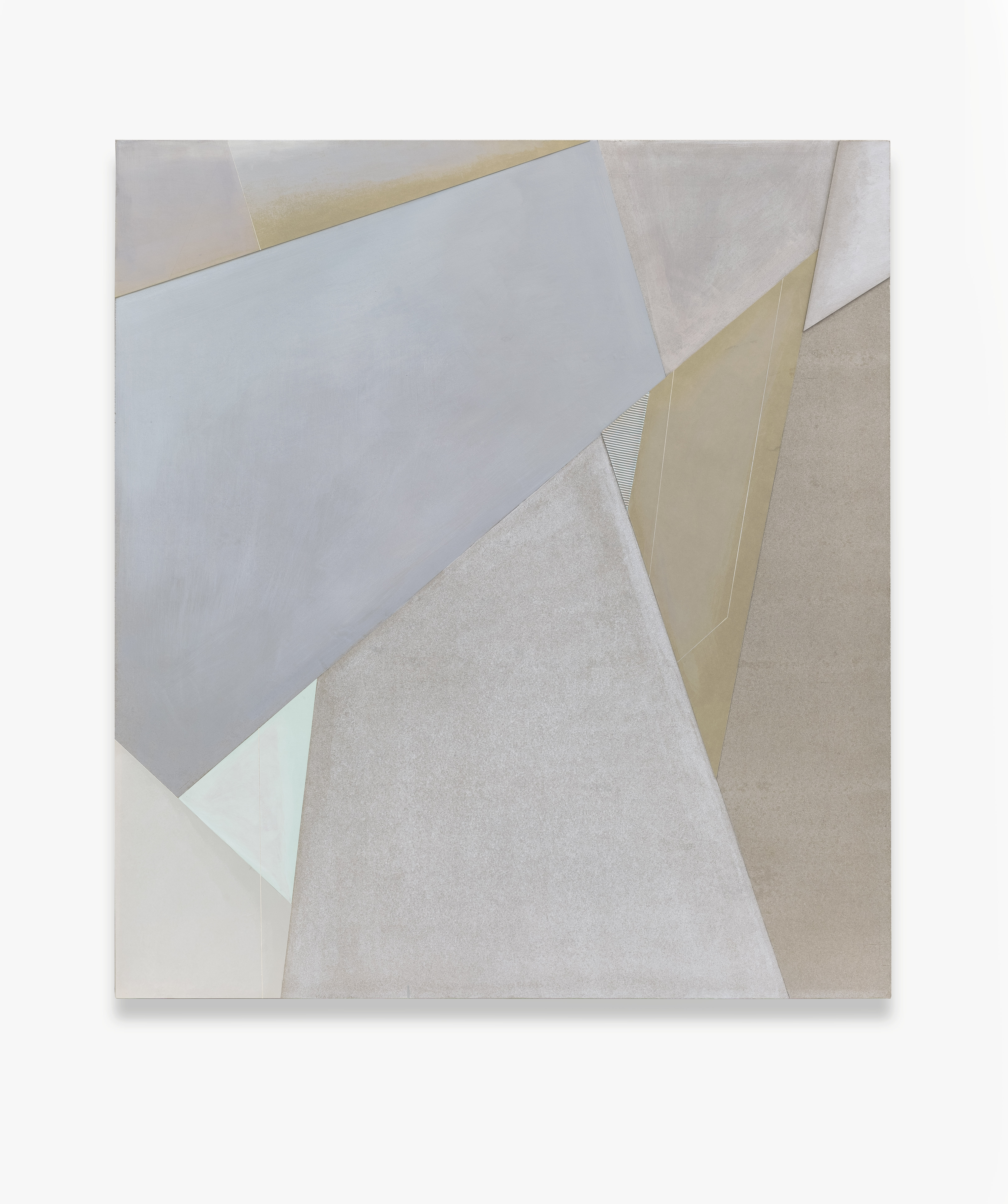 自2013年王豪開始以水泥作為個人創(chuàng)作媒介以來,三個系列“寂”、“樸”、“遠”并行展開。“寂”和“樸”強調(diào)水泥作品的靜態(tài)特征,不論是單件作品還是多件組合作品,在水泥材料的細微變化與色塊搭配上,力求傳達出一種寧靜、樸拙的整體氣息;“樸”系列在形式上更為豐富,不僅嘗試使用斜線、三角形乃至圓形,還探索富于中國古典韻味的形式表達(例如對中國古代手卷的模擬);“遠”系列的名稱則來源于中國傳統(tǒng)山水繪畫所特有的透視技法“三遠”概念,這系列作品意圖通過畫面的動態(tài)表現(xiàn)打破二維空間限定,拓展平面繪畫的深度與廣度,從美學(xué)意境上與高遠、深遠、平遠相融合。