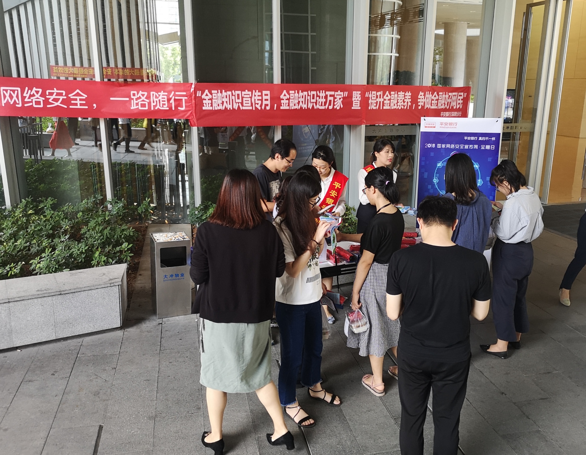 針對非法集資案件頻發(fā)的情況,9月19日中午,平安銀行深圳分行組織大沖支行在人群密集區(qū)域設點宣傳,工作人員以發(fā)放宣傳折頁、擺放橫幅、張貼海報等形式向公眾普及各類正規(guī)投資渠道等投資理財知識,引導公眾合理選擇金融產(chǎn)品和服務,提升防范非法金融活動的能力,呼吁公眾遠離非法集資、非法放貸、金融詐騙。此外,該行工作人員還運用生動的案例向公眾宣講了防范電信詐騙的技巧,提高公眾防騙意識。