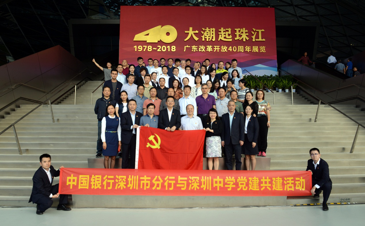 近日,中國(guó)銀行深圳東門管轄支行與深圳中學(xué)開(kāi)展黨建共建活動(dòng),雙方黨員代表共同前往深圳改革開(kāi)放展覽館,參觀了“大潮起珠江——廣東改革開(kāi)放40周年展覽”。深圳中行蒙震紀(jì)委書記和深圳中學(xué)王東文副校長(zhǎng)帶領(lǐng)黨員代表參加了此次活動(dòng)。
