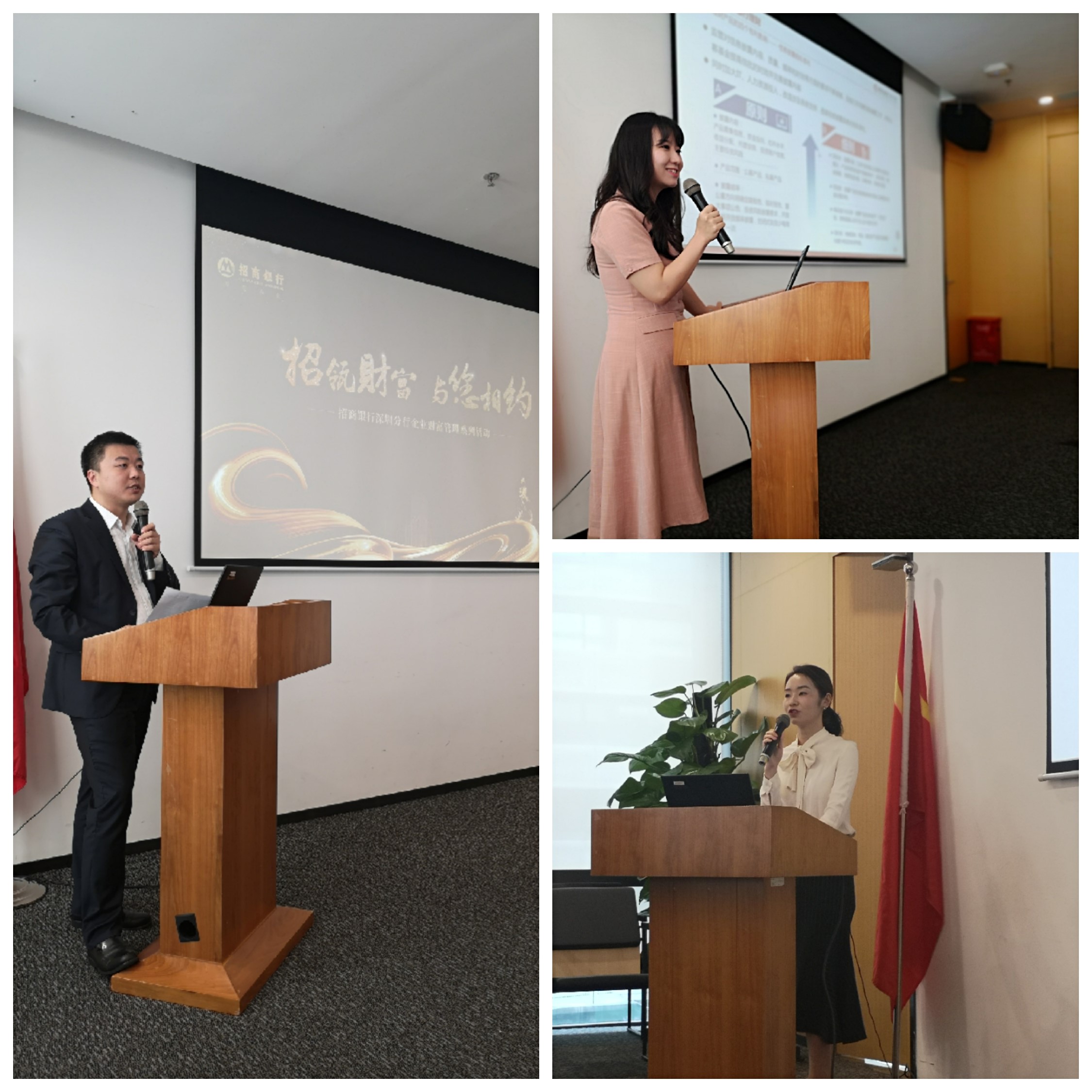 為提升招商銀行企業(yè)財富管理品牌,夯實全行企業(yè)財富管理客群,招商銀行深圳分行于2019年6月21日在分行大廈舉辦了“招瓴財富與您相約”——企業(yè)財富管理投資沙龍??傂匈Y產(chǎn)管理部產(chǎn)品總監(jiān)、總行公司金融總部投資顧問出席了活動并做專題演講。本次活動共重點邀請我行代推介挽回客戶、新拓理財客戶共30余位企業(yè)客戶參加。