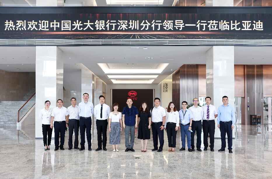 2018年12月11日,光大集團與比亞迪在中國光大中心簽署戰(zhàn)略合作協(xié)議。次年9月,李曉鵬董事長前往深圳調研比亞迪,與比亞迪董事長兼總裁王傳福進行工作會談,雙方合作更為密切。2021年6月9日,光大銀行深圳分行行長韓學智率隊拜訪比亞迪集團,雙方就踐行國家“創(chuàng)新、協(xié)調、綠色、開放、共享”發(fā)展理念,進一步落實中國光大集團與比亞迪集團重要戰(zhàn)略合作協(xié)議,深化綜合金融服務,加強協(xié)同聯(lián)動發(fā)展等方面進行座談,為下一步光大銀行與比亞迪集團的合作打下堅實的基礎。