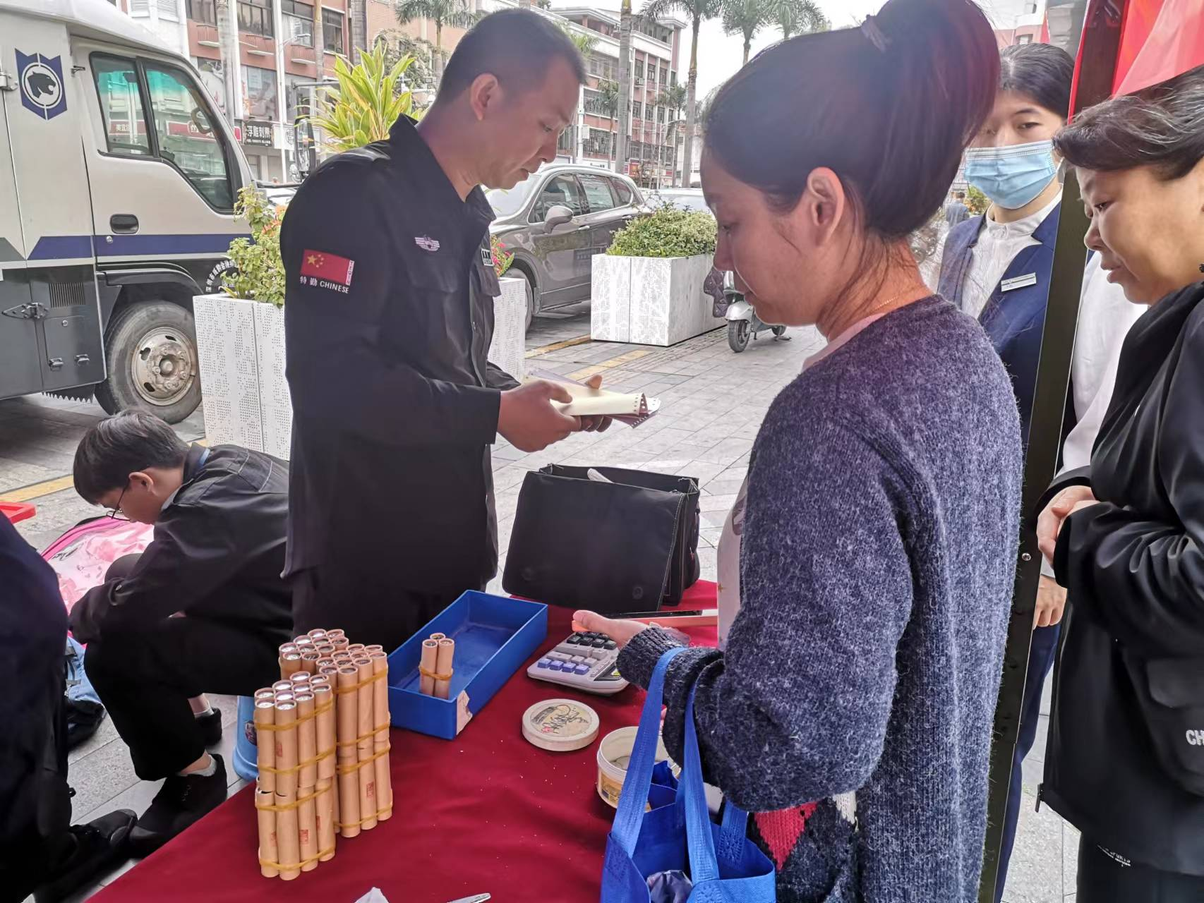 開展硬幣大篷車兌換活動(dòng),活躍社區(qū)零鈔交互,滿足社區(qū)居民的硬幣需求。2023年,深圳農(nóng)商銀行聯(lián)合威豹押運(yùn)公司開展17次硬幣大篷車兌換活動(dòng),回收硬幣約70萬元,同時(shí)向有需要零散鈔的超市、商戶、市民提供成卷的硬幣兌換。在兌換活動(dòng)現(xiàn)場,同時(shí)宣傳反假貨幣、不得拒收現(xiàn)金等內(nèi)容,營造良好的人民幣支付流通環(huán)境。