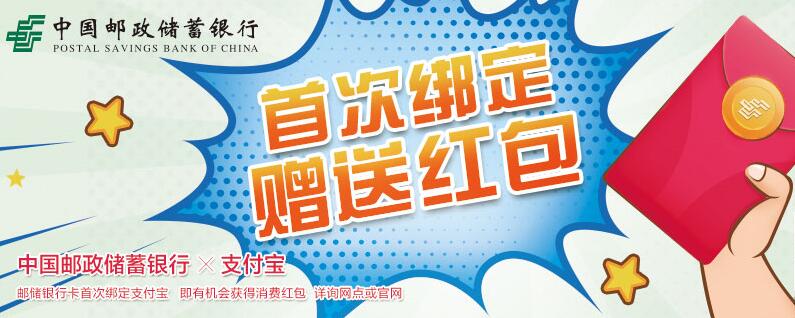 中國郵政儲蓄銀行“支付寶首綁送紅包”活動來襲
