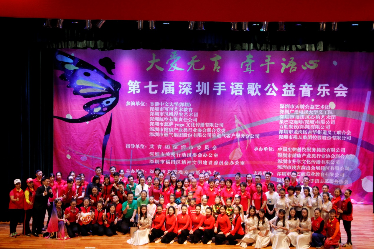 據(jù)悉,本屆手語歌公益音樂會由深圳市福田區(qū)宣傳文化體育事業(yè)發(fā)展專項資金資助,同時獲得市委宣傳部、市共青團(tuán)、市關(guān)愛辦、區(qū)精神文明辦的大力支持,由深圳市關(guān)愛殘友志愿者協(xié)會主辦,中國生物科技服務(wù)控股有限公司、深圳市健康產(chǎn)業(yè)類行業(yè)協(xié)會聯(lián)合黨委、深圳市升學(xué)文化傳播有限公司和深圳市殘友演出會展經(jīng)濟(jì)有限公司等單位聯(lián)合協(xié)辦。自2008年首屆手語歌公益音樂會舉辦以來,歷屆“深圳手語歌公益音樂會”都會邀請政府、企事業(yè)單位、社會團(tuán)體等學(xué)習(xí)手語歌舞、舉行大型公益匯演。(張俊達(dá))