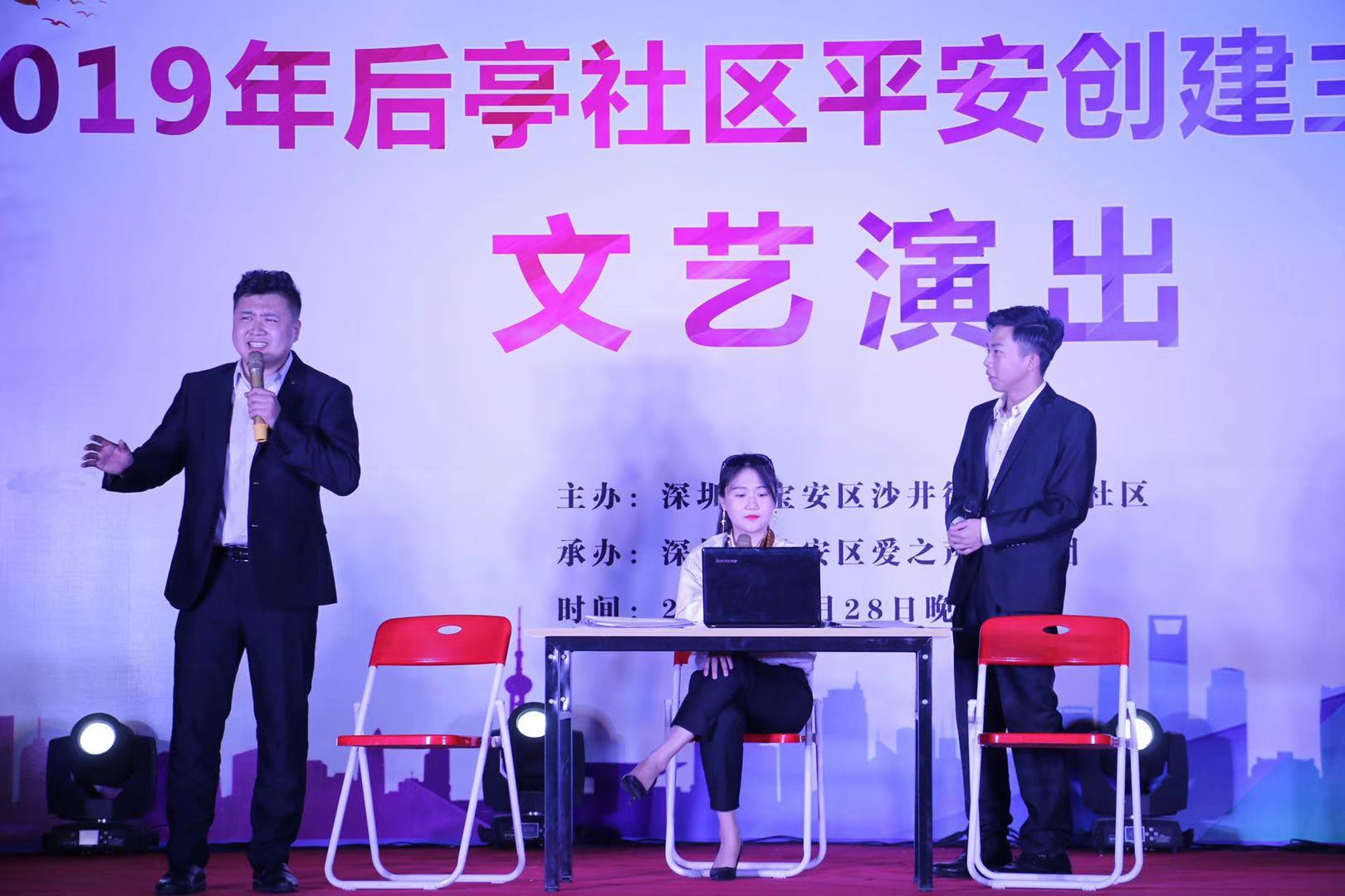 深圳新聞網(wǎng)2019年3月1日訊 (記者 周錦春 通訊員 孫善文)2月28日晚,寶安區(qū)沙井街道后亭社區(qū)在四海云亭廣場舉辦“平安創(chuàng)建宣傳”文藝演出活動,通過生動活潑的方式,推動平安社區(qū)的建設。此項活動由寶安區(qū)愛之聲藝術團承辦,約600名社區(qū)居民和轄區(qū)務工人員參加。