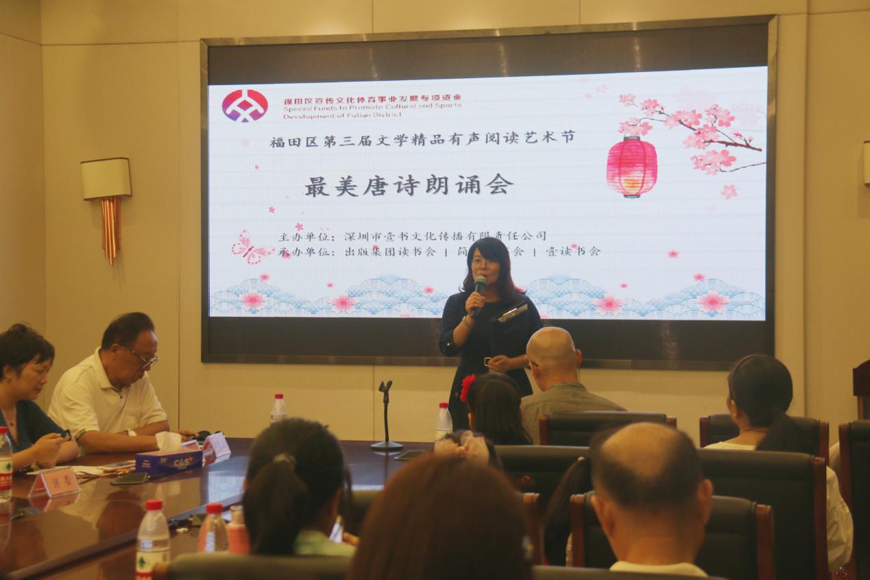 深圳新聞網(wǎng)訊 2019年8月31日下午,“福田區(qū)第三屆文學精品有聲閱讀藝術節(jié)”之“唐詩三百首”專場活動“走進大唐李白”公益文化講座暨最美唐詩朗誦會在簡閱書吧香蜜湖店三樓多功能室成功舉辦?;顒佑缮钲谑幸紩幕瘋鞑ビ邢挢熑喂尽⑸钲谑袝俏幕顿Y控股有限公司主辦,出版集團讀書會、簡閱讀書會和壹讀書會承辦,本次活動吸引了眾多對中國傳統(tǒng)文化富有興趣的詩歌愛好者,活動開始前已座無虛席,靜候這場關于李白、關于詩歌的文化盛宴。