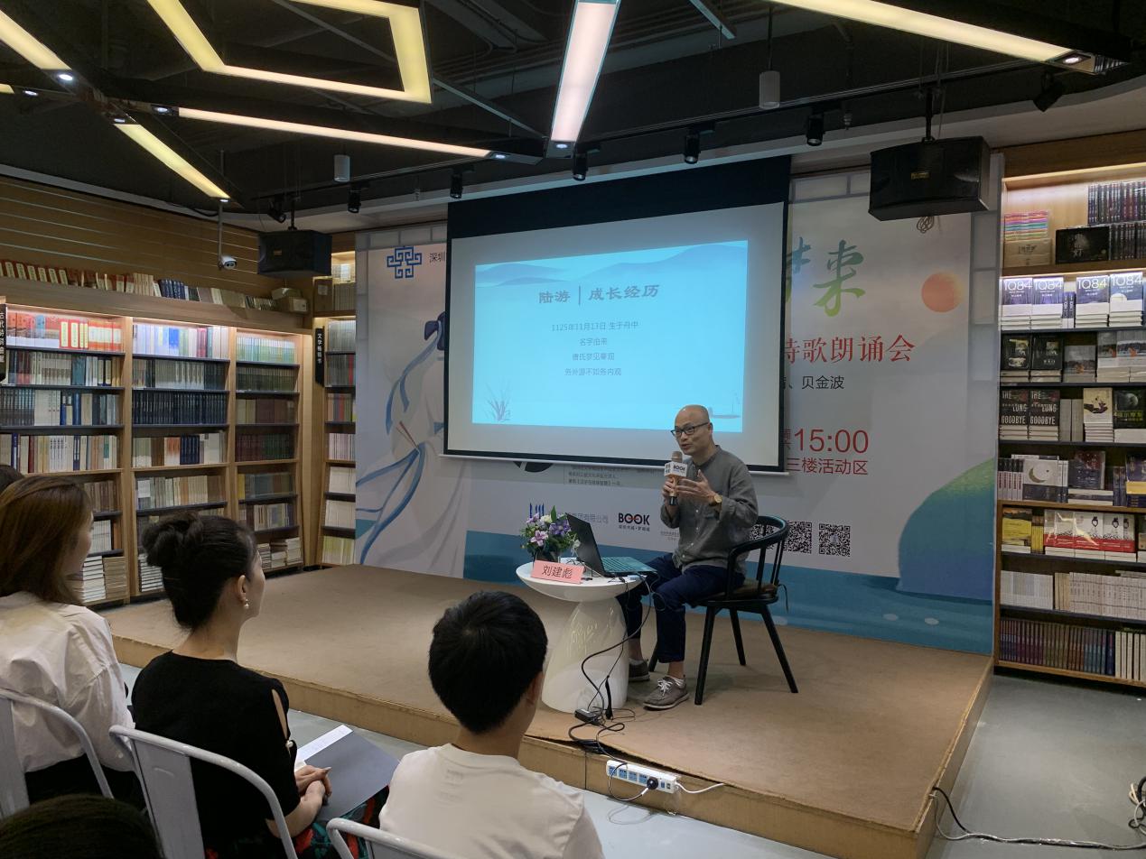 深圳新聞網(wǎng)訊 9月21日下午,由深圳市宣傳文化事業(yè)發(fā)展專項基金資助的“新時代中華優(yōu)秀傳統(tǒng)文化進社區(qū)”項目之“鐵馬冰河入夢來”陸游愛國詩詞公益講座暨陸游愛國詩詞朗誦會在羅湖書城三樓活動區(qū)成功舉辦。本次活動由深圳市壹書文化傳播有限責(zé)任公司、深圳書城羅湖城共同主辦,壹書閱讀推廣人、愛詩家創(chuàng)始人劉建彪先生擔(dān)任主講嘉賓?;顒由形撮_始,現(xiàn)場已座無虛席,觀眾們對講座充滿了期待,更有小朋友們朗誦起了陸游的名句。