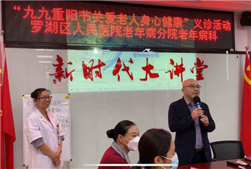 同日,深圳市簕杜鵑養(yǎng)老產業(yè)發(fā)展促進中心和深圳中創(chuàng)智慧研究集團有限公司一起,共同參加了由羅湖區(qū)人民醫(yī)院老年病分院老年病科、翠寧黨群服務中心、深圳市羅湖區(qū)鶴年居家養(yǎng)老服務中心、翠嶺社康中心、深圳市人民醫(yī)院老年病科、深圳市吉祥緣基金會共同舉辦的“九九重陽節(jié) 關愛老人身體健康”大型義診活動。活動中,邱傳旭院長介紹了該院早在2014年就在深圳羅湖區(qū)開啟了養(yǎng)老新模式,把醫(yī)院“搬”進了養(yǎng)老院,在區(qū)屬養(yǎng)老機構內設置了首家醫(yī)養(yǎng)結合醫(yī)院——深圳市羅湖區(qū)醫(yī)養(yǎng)融合老年病醫(yī)院,為養(yǎng)老機構撐起健康服務保護傘。六年來,該院團隊通過兢兢業(yè)業(yè)的工作,不僅打造出醫(yī)養(yǎng)結合新品牌,還榮獲全國“敬老文明號”稱號 ,讓老人的晚年生活更豐富、更有意義。