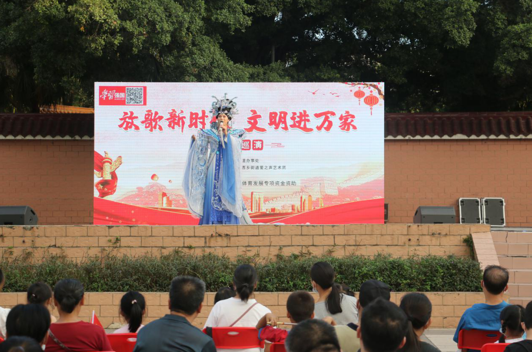 “放歌新時代 文明進萬家”文藝巡演由深圳市寶安區(qū)西鄉(xiāng)街道辦主辦,深圳市寶安區(qū)西鄉(xiāng)街道愛之聲藝術團承辦,寶安區(qū)宣傳文化體育發(fā)展專項資金資助。來自愛之聲藝術團的深圳一線文藝工作者們通過文藝表演的形式為廣大居民奉獻精彩的文藝大餐,用群眾喜聞樂見的形式展示西鄉(xiāng)發(fā)展變化,再現(xiàn)有志之士在西鄉(xiāng)干事創(chuàng)業(yè)、成就夢想的情景,并宣傳了黨的十九屆五中全會精神,深受群眾歡迎。