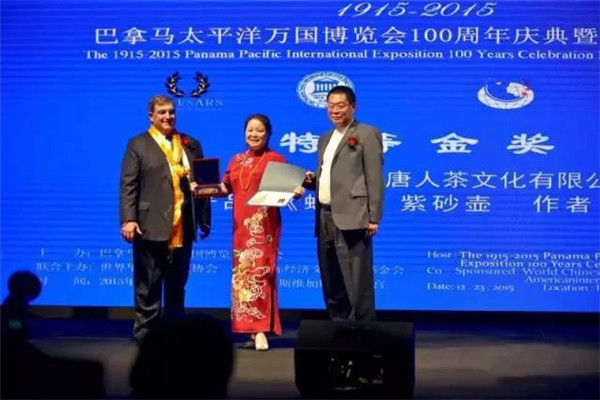 2015年底,巴拿馬太平洋萬國博覽會在美國拉斯維加斯舉行,唐朝霞選送參展的“蜂菊壺”榮獲特別金獎,她也因此成為新中國成立以來唯一獲此國際大獎的女性紫砂藝術(shù)家。