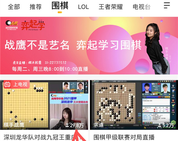 今日虎牙直播,職業(yè)女棋手戰(zhàn)鷹繼續(xù)現(xiàn)場講解點(diǎn)評深圳龍華隊(duì)對局情況,觀看人數(shù)又創(chuàng)新高,直沖30萬大關(guān)。賽后,“龍哥”時(shí)越來到直播室,與迷們一起分享了對局過程中的心路歷程。戰(zhàn)鷹作為圍棋知名主播,是深圳龍華隊(duì)網(wǎng)上直播合作人,為龍華隊(duì)帶來了一波接一波的人氣,直播室十分熱鬧!喜歡的朋友接著看吧!不過,大家要記得:明天圍甲休息一天,接著三天會連播。