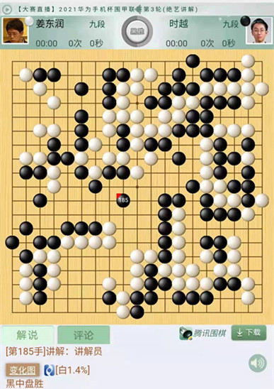 今日比賽中,二臺(tái)的主將時(shí)越先贏,是盤,時(shí)越執(zhí)黑主將對(duì)陣姜東潤(rùn)。行至中盤,白棋侵消上邊黑棋模樣,黑棋攻擊手法略嫌急躁,局面復(fù)雜。戰(zhàn)斗蔓延到左上時(shí)候,白棋處理眼位不當(dāng),導(dǎo)致左上白棋需要多花一手棋做活。被黑棋中央搶先動(dòng)手吃住大龍。隨后,四臺(tái)快棋外援申旻埈繼昨日后又一次險(xiǎn)勝,可謂好運(yùn)連連。本局申旻埈執(zhí)黑對(duì)陣商借到西藏隊(duì)的沈沛然。白棋開(kāi)局至中盤超水平發(fā)揮,局面一度白棋勝勢(shì)。官子時(shí)候黑棋在白空里試應(yīng)手,白棋讀秒中忙中出錯(cuò),下出緩手應(yīng)對(duì)失誤,被黑棋便宜了接近十目棋,導(dǎo)致局勢(shì)逆轉(zhuǎn)黑棋幸運(yùn)獲勝。