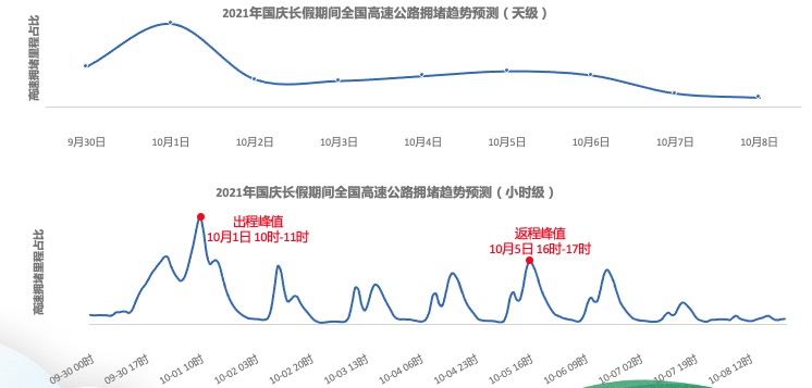 《預(yù)測(cè)》顯示,受國(guó)慶假期高速免費(fèi)通行以及出行需求集中的影響,預(yù)計(jì)2021年9月30日13時(shí)開始,全國(guó)高速交通壓力將逐漸增大,21時(shí) -10月1日1時(shí)全國(guó)高速會(huì)有短時(shí)出行小高峰,10月1日9時(shí) -12時(shí)為高速出程高峰時(shí)段,峰值將出現(xiàn)在10時(shí) -11時(shí)。