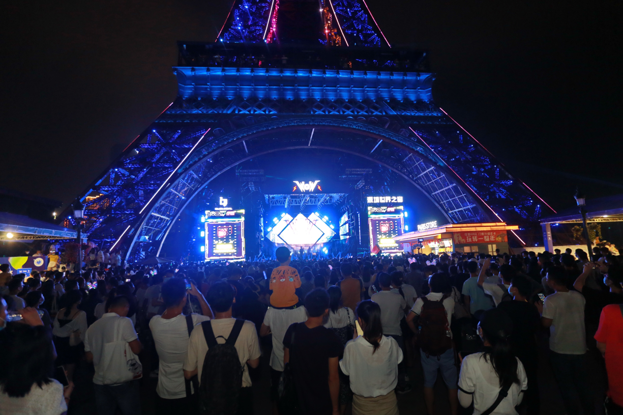 17:00—22:00鐵塔下,今年國慶最重磅節(jié)目超豪華陣容“WOW潮音嘉年華”閃亮登場,本屆潮音嘉年華群星璀璨,新生代實力歌手趙磊、狂歡一路歌舞相隨,國內(nèi)dancerock先行軍“脆莓樂隊”一經(jīng)出場全場狂歡吶喊,粉絲們瘋狂打 call!直擊心靈的音樂,震撼的舞臺效果游客們紛紛表示“值回票價”。接下來的幾天重磅明星接連不斷: solo新星趙讓、霓虹花園、Hiphop少年組合BOY STORY、脆莓樂隊、LeeyOn李昂、對角巷樂隊、布偶樂隊、圳動、黑玫瑰俱樂部、Spaceman太空人等演藝界先鋒人物將陸續(xù)登上舞臺傾情獻演,用充滿活力的青春姿態(tài)向未來致敬,現(xiàn)場游客沉浸其中,隨著歌手與音樂不斷嗨!環(huán)球舞臺同時上演大型音樂舞蹈史詩《盛世紀》;冰場廣場開啟魔幻光影秀《奇幻歐洲》。