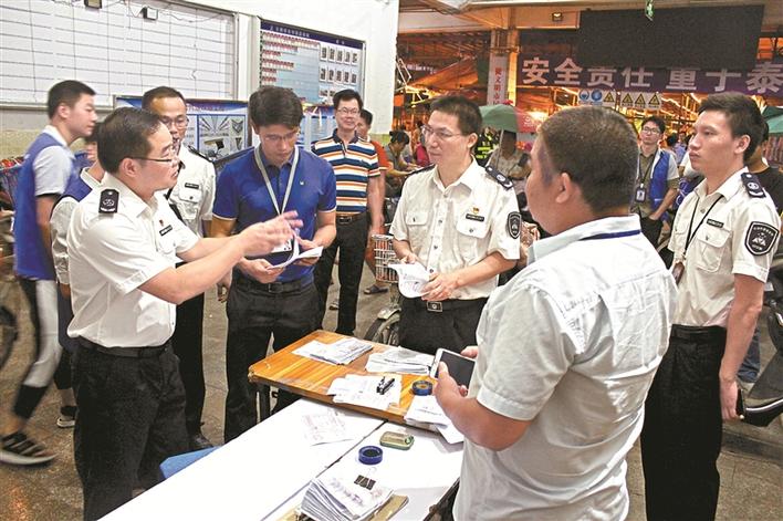 8月16日,凌晨4時的天還未亮,市市場和質(zhì)量監(jiān)管委光明局辦公大樓卻早已燈火通明、人頭攢動。原來,這一天,又是光明局統(tǒng)一組織開展的生豬肉品和水產(chǎn)品專項執(zhí)法行動,轄區(qū)消委會、街道辦、社區(qū)工作站、派出所及該局食用農(nóng)產(chǎn)品監(jiān)管等部門正齊聚這里,共商行動如何開展。作為光明新區(qū)食品安全保障工作的品牌活動,這種“挑燈夜戰(zhàn)”已成為常態(tài)。