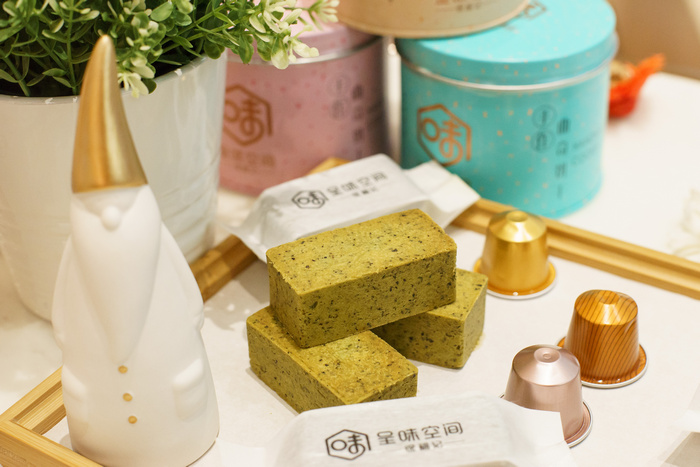 除了這款奶黃流心酥,徐福記實體品牌體驗店——呈味空間主打的現(xiàn)烤手工鳳梨酥還有多種口味,有經(jīng)典原味/蔓越莓/馥香烏龍茶/相思抹茶/玫瑰口味供君任選。每款鳳梨酥的誕生都來之不易,從材料制作、烘焙、出爐都要經(jīng)過糕點師傅的精心手工打磨?;ㄙM15種原料,經(jīng)過11道工序,連各種用料配比都要精確到克才實現(xiàn)一塊鳳梨酥的誕生,看得出這塊不普通的鳳梨酥“出生“有多矜貴。而且原材料都是精心挑選的清甜細(xì)膩陽光土鳳梨,通常10個才有一個符合要求,制作一盒就至少需要整整20個。反復(fù)打磨鳳梨的果肉,再熬制成細(xì)膩的、富有纖維感的果餡,絲絲纖維口感,一口下去,滿滿鳳梨果肉,瞬間得到視覺與味蕾的雙重滿足。特別一提的還有制作鳳梨酥的糖,不是普通的白砂糖,而是健康而且低熱量的 “海藻糖”,簡直是為擔(dān)心發(fā)胖問題的吃貨們帶來的福音。只有10天保質(zhì)期的美味,吃貨們不用半個鐘就能解決了哈哈。