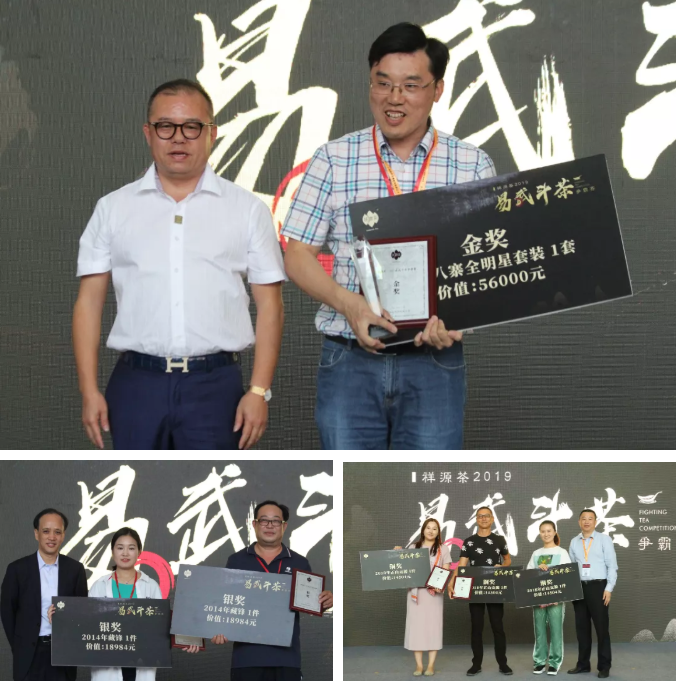 在歷時2個小時,三輪激烈比拼過后,隨即公布金銀銅獎得主,楊振林奪得本屆斗茶賽的金獎,贏得價值56000元的2016年“易武七村八寨全明星套裝”一套;銀獎獎品為價值18984元“2014年藏鋒”各一件;銅獎獲得獎品是價值14504元“2018年正山貢源”各一件;另外成功晉級第二輪的選手均獲參與獎,獎品是2018年正山貢源一餅。