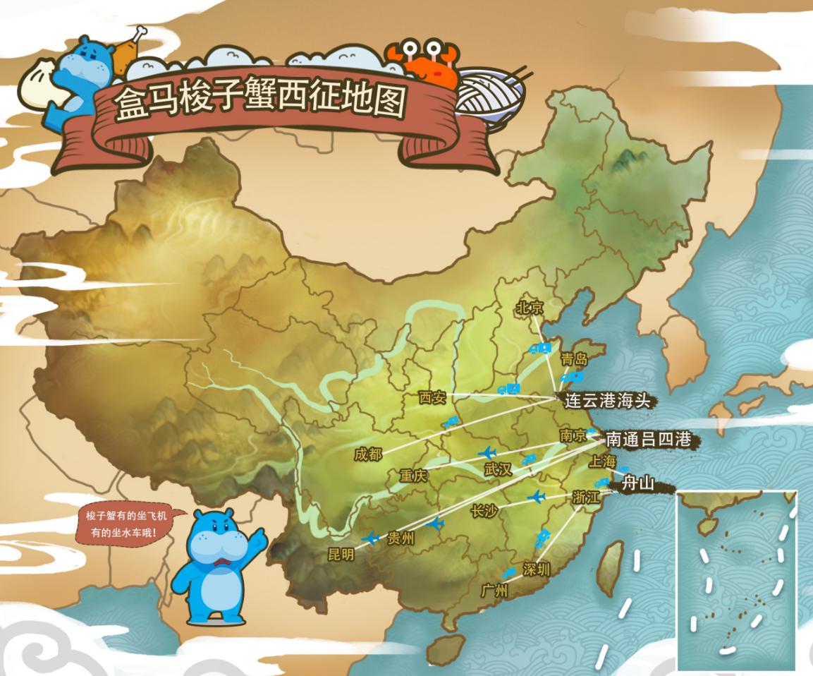 除了浙江舟山,盒馬還在在江蘇呂四、連云港分別設(shè)立了直采基地和純海水恒溫暫養(yǎng)倉,每個暫養(yǎng)倉可以容納5萬斤的梭子蟹和皮皮蝦,可以滿足2 -3天的海鮮供應量,并根據(jù)空間距離、物流干線等因素,來調(diào)撥供應近20個城市的門店,提升海鮮的鮮活度。