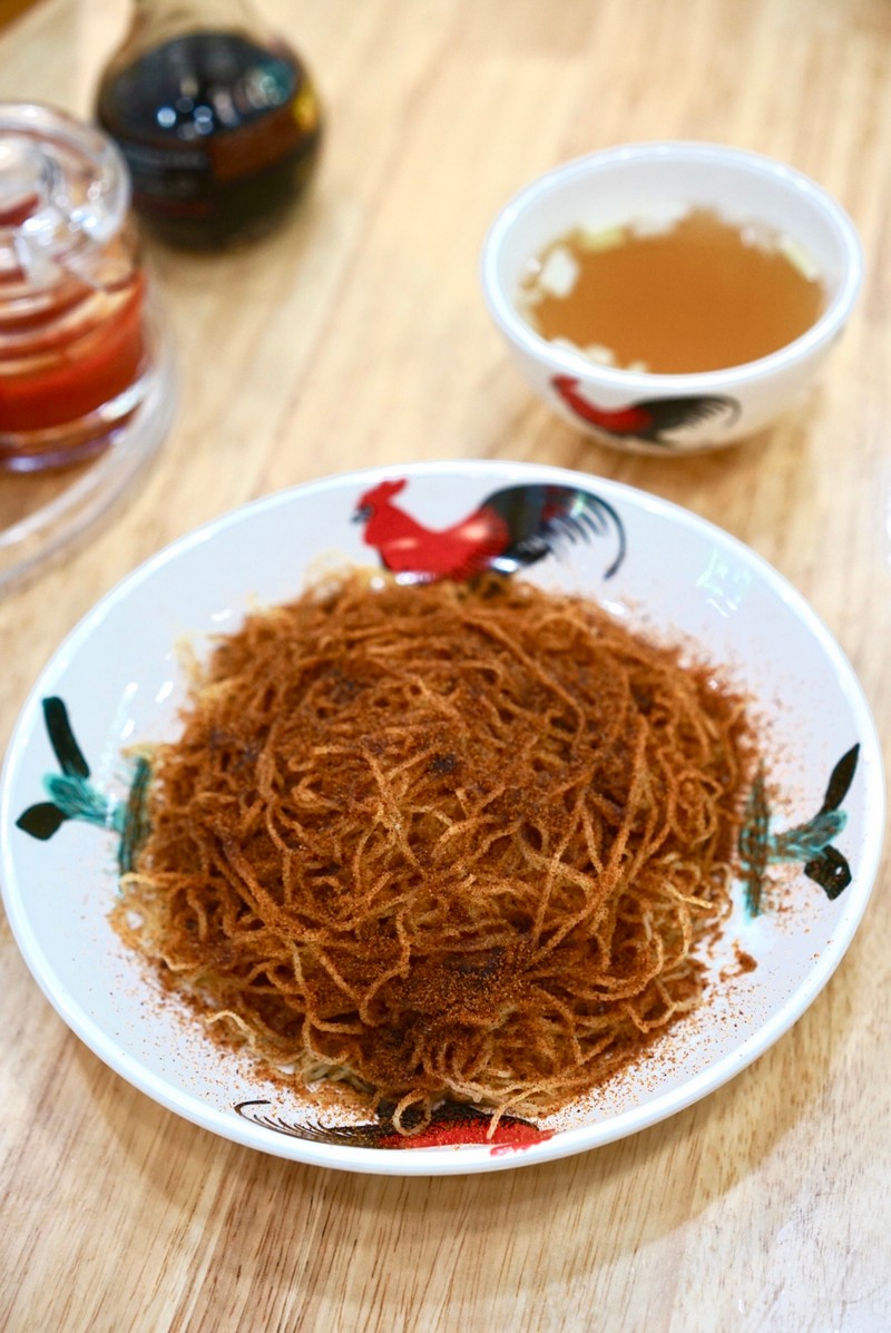 云吞面的湯底,離不開用火炙燒過的大地魚。大地魚分油地、沙地和赤地。油地的油分更高,一燒,油脂便逼出來了。赤地的香更濃郁些,斌哥采用的是赤地。舊時港派云吞面湯底里除了大地魚、豬骨以外,還有曬干的蝦米和蟹仔,如今許多店鋪用蝦皮來替代。斌哥堅持用生曬過的蟛蜞和蝦,加上大地魚煲湯。