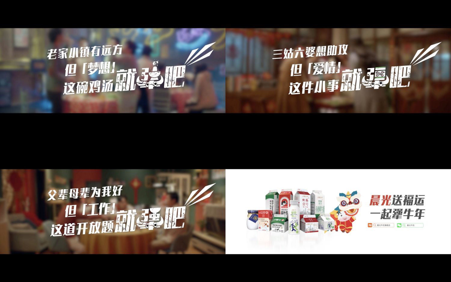 1月29日,晨光乳業(yè)《就犟吧》賀歲TVC微信、朋友圈正式上線,就春節(jié)熱門話題“結(jié)婚、找穩(wěn)定工作、要不要外出追夢”進(jìn)行了生動(dòng)演繹。在熱鬧喜慶的年節(jié)氛圍中,趣味反轉(zhuǎn)的劇情,形象展現(xiàn)了新一代年輕人對于工作、愛情、夢想“不服輸、敢堅(jiān)持”的態(tài)度。