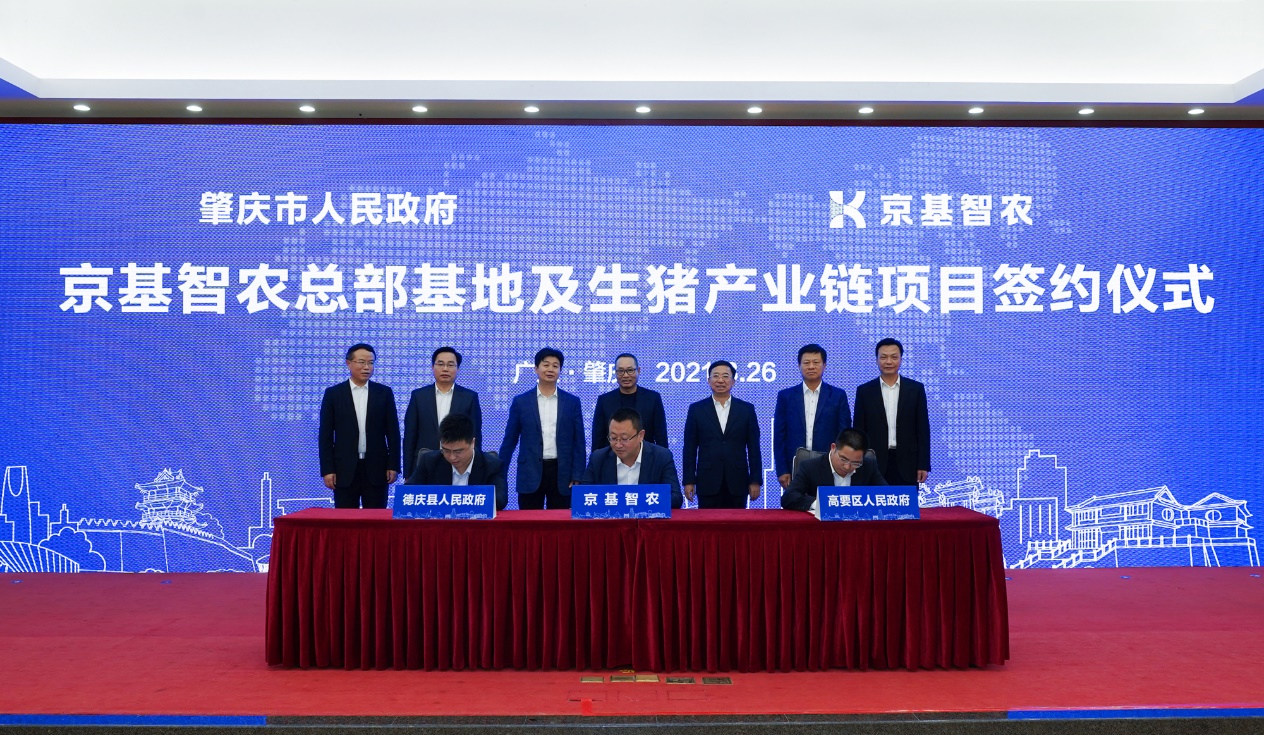 京基智農(nóng)總裁巴根(中)與高要區(qū)、德慶縣人民政府簽約