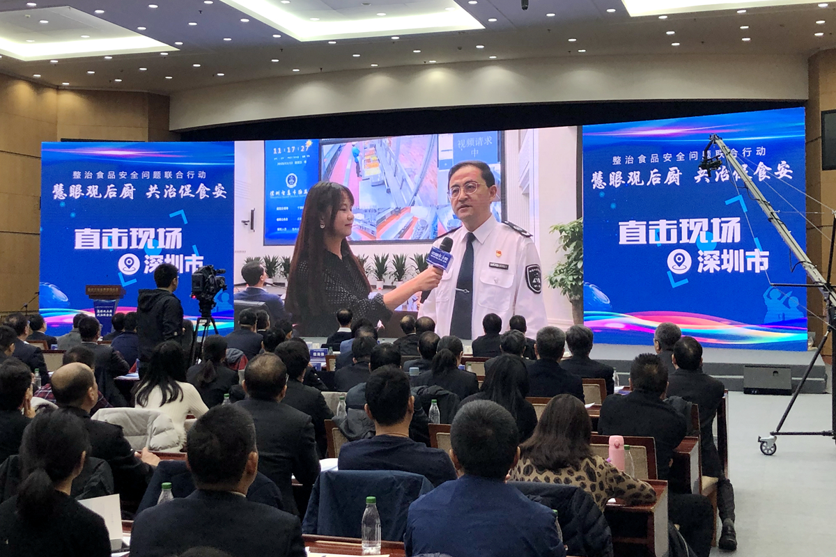 2日,深圳市市場(chǎng)監(jiān)管局舉辦“慧眼觀后廚 共治促食安”啟動(dòng)儀式,深圳市市長(zhǎng)陳如桂、副市長(zhǎng)黃敏、市政府秘書長(zhǎng)曾湃、市政府副秘書長(zhǎng)楊修友、福田區(qū)區(qū)長(zhǎng)黃偉、市市場(chǎng)監(jiān)管局副局長(zhǎng)李忠、深圳報(bào)業(yè)集團(tuán)社長(zhǎng)陳寅、人大代表鄭學(xué)定等出席儀式,并邀請(qǐng)市民代表、經(jīng)營(yíng)單位代表共同啟動(dòng)深圳食品安全“互聯(lián)網(wǎng)+監(jiān)管”模式。