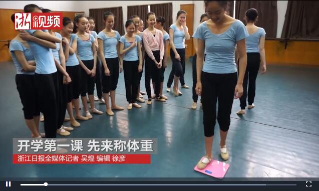 2月21日,記者來到浙江藝術職業(yè)學院舞蹈系,看著那個骨瘦如柴的女孩子輕盈地跳上體重秤,顯示是43.6公斤。“天啦,超重了超重了,要跑10圈了!”她說。