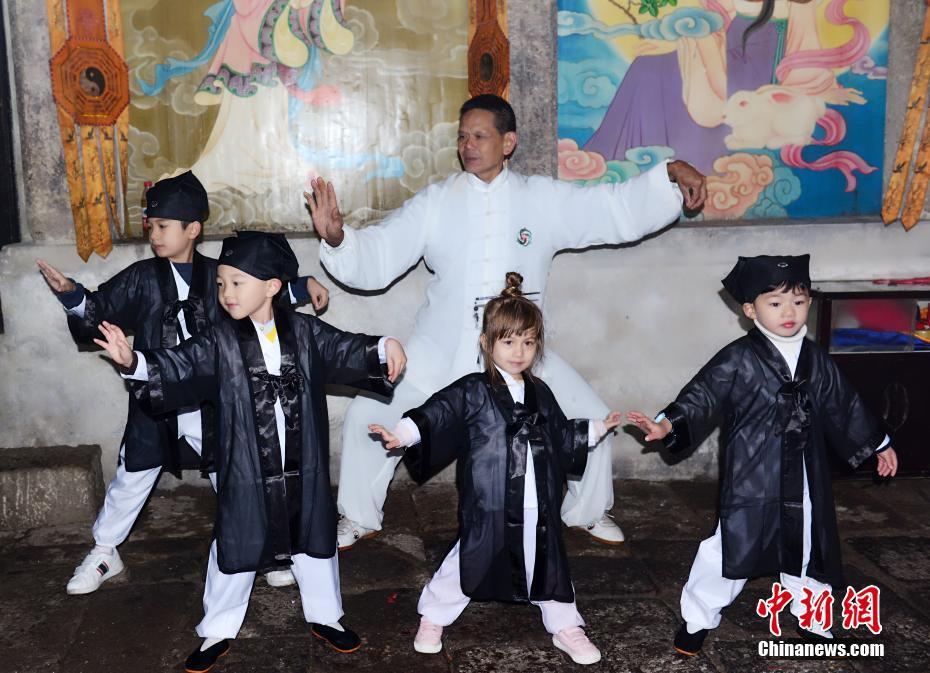 萌翻了!中外萌娃身穿道服三清山學國學
