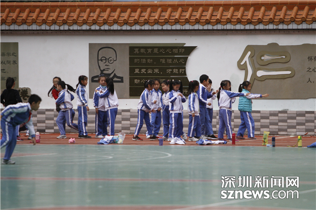 中放學后,羅湖螺嶺外國語實驗學校二部不少學生聚集在操場上,等待父母接送回家