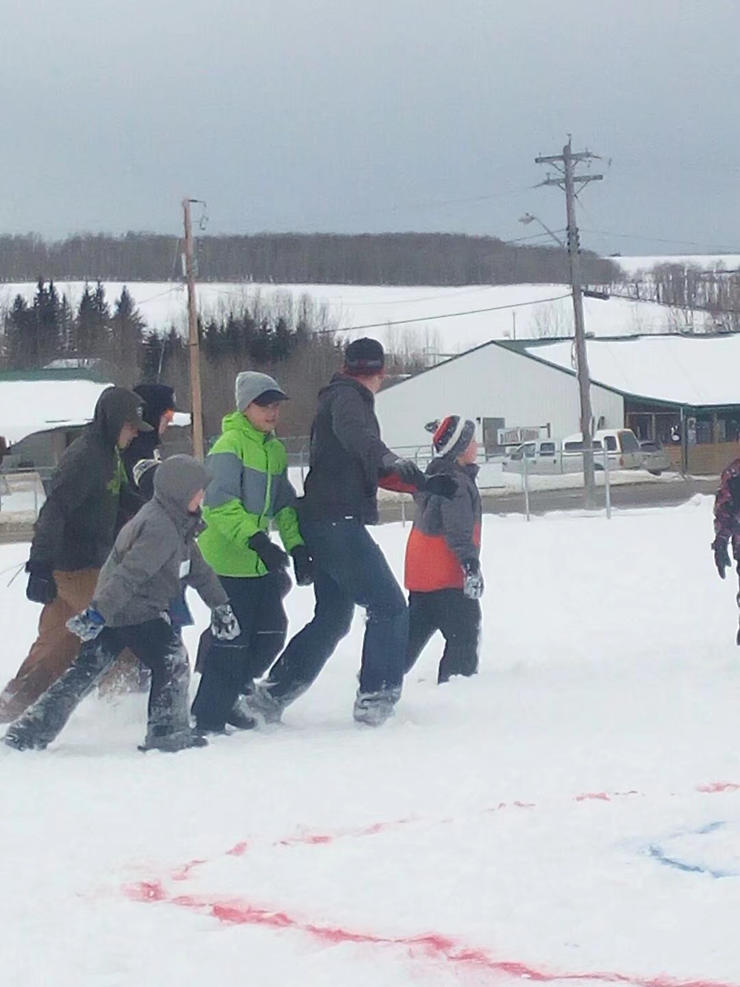 在學(xué)校,一望無際的操場(chǎng)上,雪丘一個(gè)比一個(gè)高,當(dāng)你站在雪丘的至高點(diǎn),笨重的校巴就不再是那么大了。喜歡雪的同學(xué)們一點(diǎn)也不怕冷。他們?cè)谘┑乩锎蚯颉⑺?、滑雪,還不時(shí)地會(huì)聽到尖叫聲,原來是同學(xué)相互在雪丘上推上推下,開心得不亦樂乎。