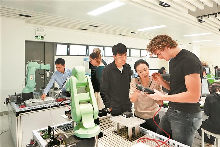 深圳商報(bào)2020年1月20日訊 阿爾卑斯山下、伊爾勒河畔,德國(guó)肯普滕當(dāng)?shù)氐淖詣?dòng)化生產(chǎn)車間,夢(mèng)想成為一名硬件工程師的張恩榮正細(xì)致觀察著生產(chǎn)流水線;而同一時(shí)刻的中國(guó),深圳信息職業(yè)技術(shù)學(xué)院(以下簡(jiǎn)稱:信息學(xué)院)西旺山下、一泓泉邊,一場(chǎng)名為“春芽草地音樂(lè)節(jié)”的戶外活動(dòng)正火熱開(kāi)場(chǎng),剛結(jié)束機(jī)電一體化實(shí)訓(xùn)課程趕過(guò)來(lái)的菲利拉起同行伙伴,興致頗高地投身到這場(chǎng)音樂(lè)節(jié)中……從1月6日起,信息學(xué)院與德國(guó)肯普滕國(guó)立第一職業(yè)學(xué)校之間為期兩周的實(shí)訓(xùn)與文化交流活動(dòng)開(kāi)啟了帷幕,張恩榮和菲利都是這項(xiàng)活動(dòng)的獲益者。