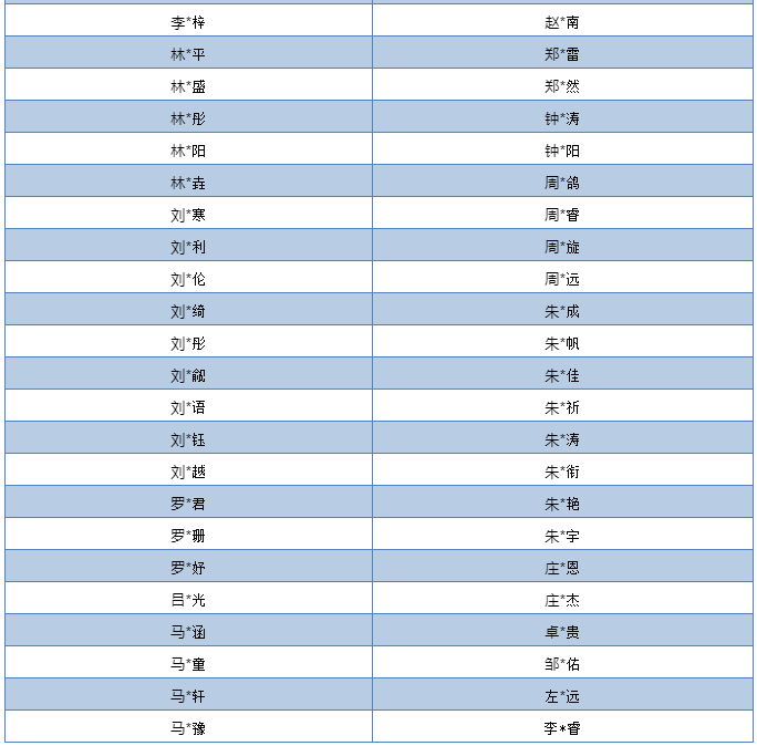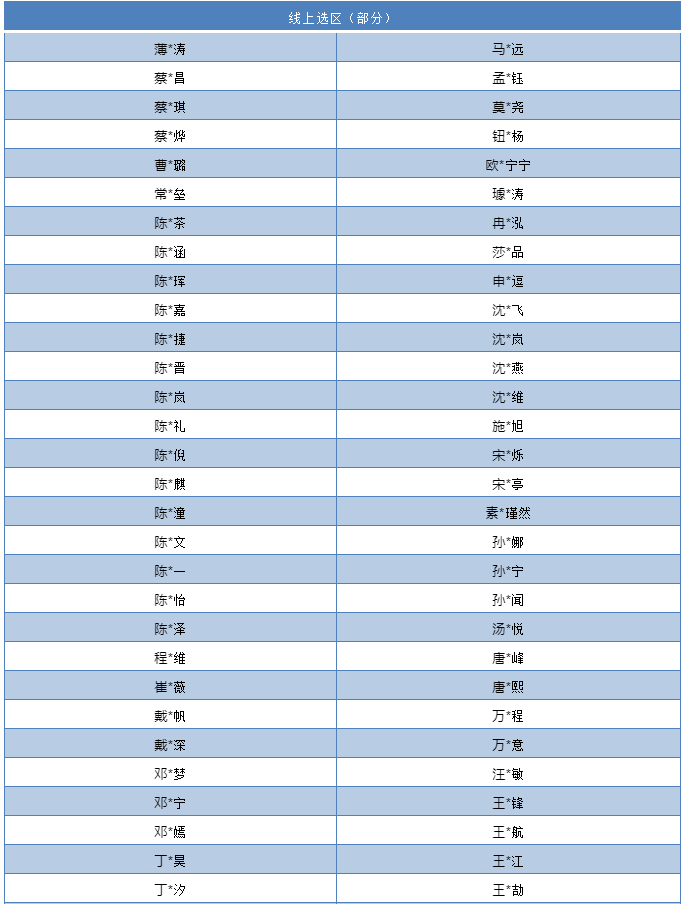 本批公布名單以姓氏首拼排序,排名不分先后,8月仍有晉級名單近期持續(xù)公布中。本期公示學生代表名單均為線上報名文友,未包含集體報名參加的學校,以學校集體報名的另行公布。