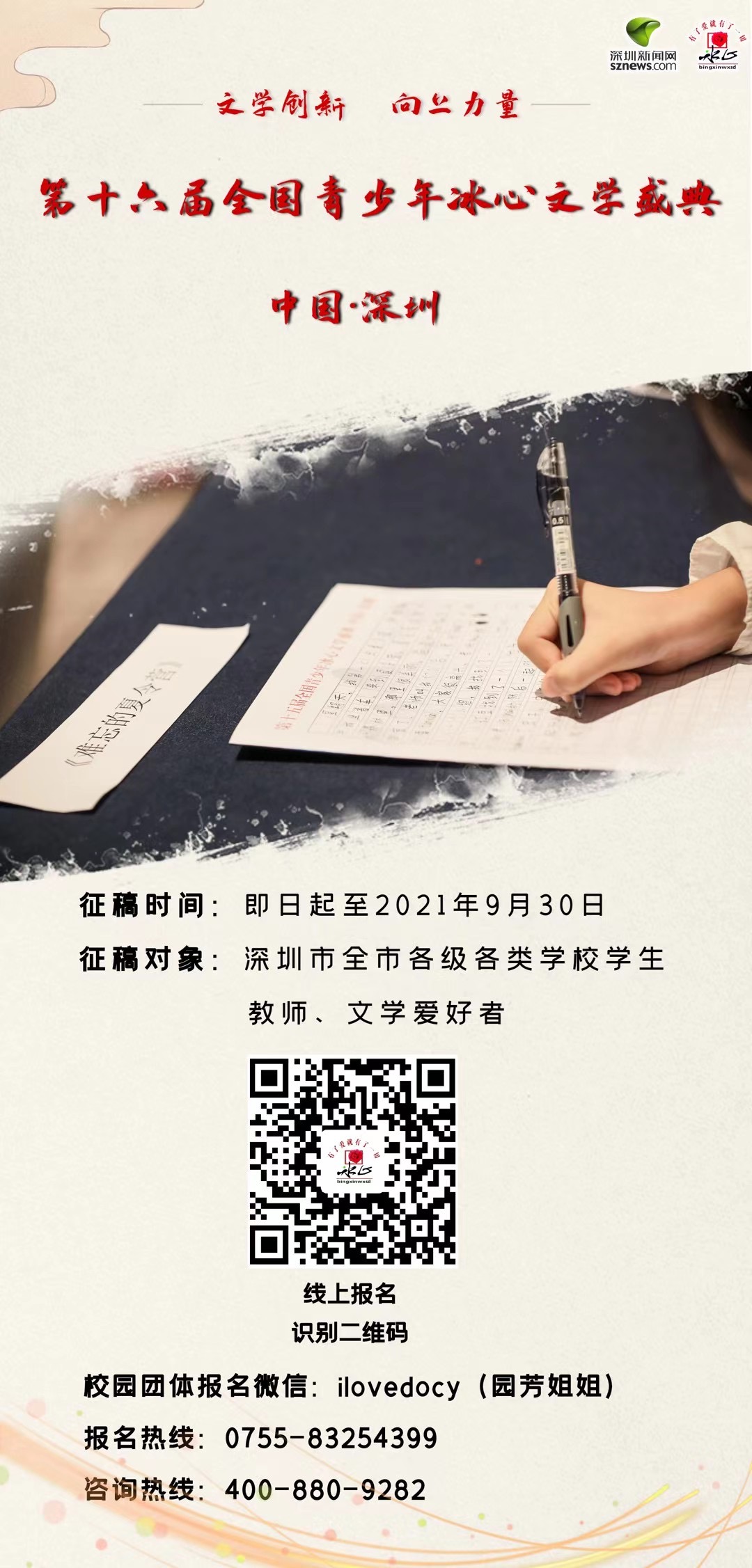 全國青少年冰心文學(xué)盛典組委會(huì)中國·深圳官網(wǎng)及公眾號(hào)發(fā)布