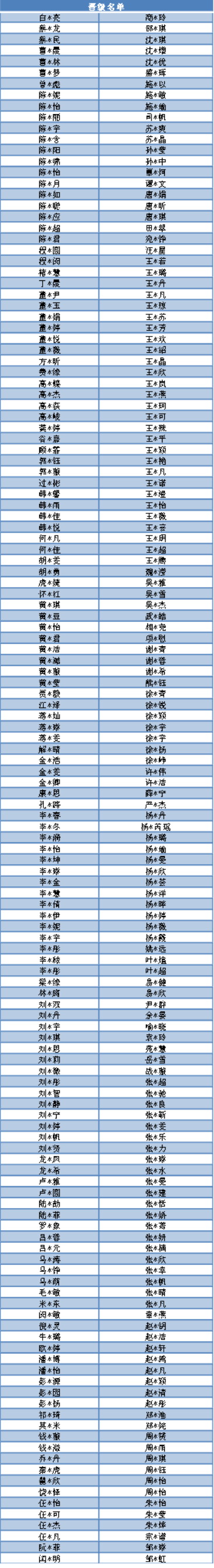 公布名單以姓氏首拼排序,排名不分先后,3月仍有晉級(jí)名單近期持續(xù)公布中。