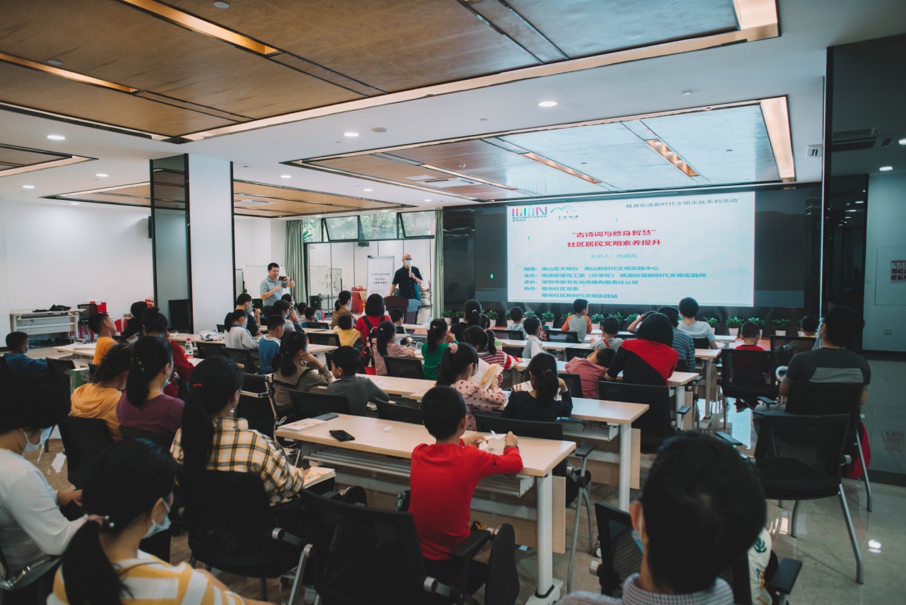 讀特客戶端·深圳新聞網(wǎng)2021年11月1日訊(記者 陳彬 通訊員 林娟玉 楊婷姻 )10月31日下午,由南山區(qū)文明辦、南山新時(shí)代文明實(shí)踐中心指導(dǎo),桃源街道黨工委(辦事處)、桃源街道新時(shí)代文明實(shí)踐所主辦,福光社區(qū)黨委、福光社區(qū)新時(shí)代文明實(shí)踐站協(xié)辦,深圳市壹書文化傳播有限責(zé)任公司承辦的“‘古詩詞與修身智慧’社區(qū)居民文明素養(yǎng)提升”活動(dòng)在福光社區(qū)黨群活動(dòng)中心多功能室舉行,活動(dòng)吸引了60余名家長及小孩參與,本次活動(dòng)根據(jù)親子的特點(diǎn),形式生動(dòng)活潑,氣氛熱烈,受到現(xiàn)場(chǎng)觀眾的一致好評(píng)。