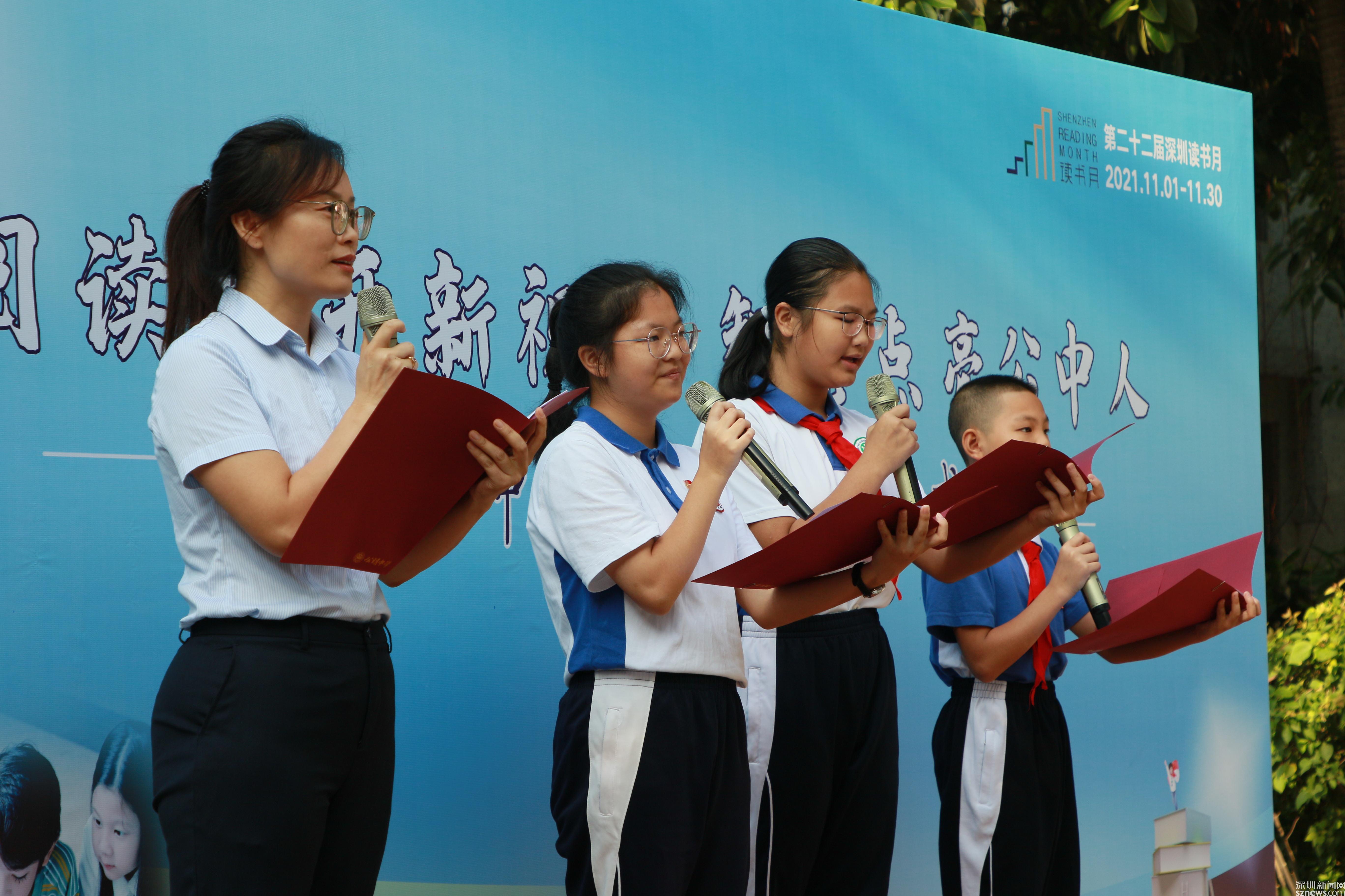 讀特客戶端·深圳新聞網(wǎng)2021年11月2日訊 (記者 曹園芳 通訊員 丘翹楚 劉小云 曾靜敏)為弘揚(yáng)“尊重知識(shí)崇尚文明”的閱讀理念,培養(yǎng)師生良好的閱讀習(xí)慣,營(yíng)造智雅的學(xué)習(xí)氛圍,塑造濃郁書(shū)香學(xué)習(xí)型校園,11月1日上午,深圳市光明區(qū)公明中學(xué)組織開(kāi)展了本年度讀書(shū)月啟動(dòng)儀式,全校師生參加了活動(dòng),活動(dòng)由初二(5)班譚欣怡同學(xué)主持。