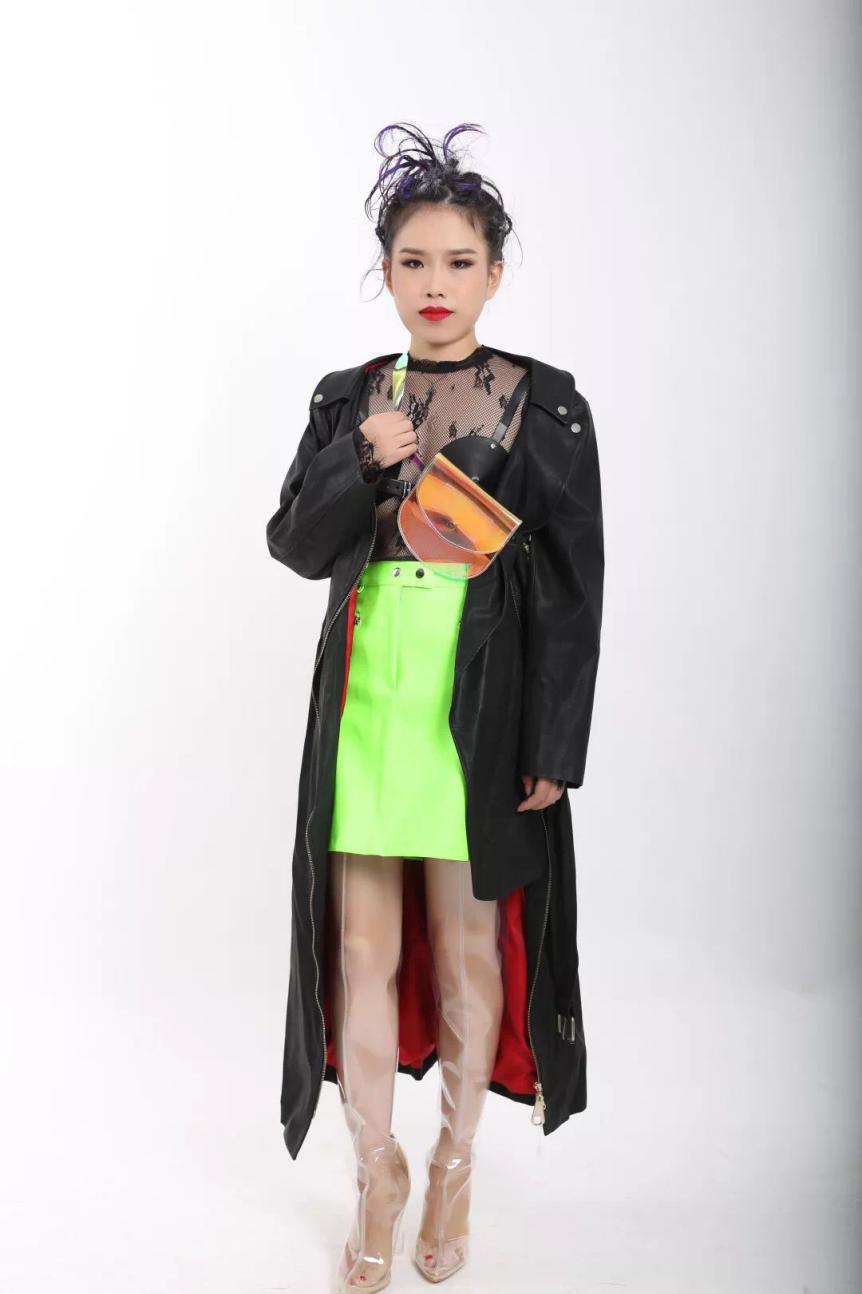 Nana長得特別冷艷的,內(nèi)心像藏了一頭野獸,如果穿日韓風(fēng)的話會埋沒了她的氣場。這次給她選擇了現(xiàn)在國際最流行的PVC靴子,搭配了熒光色的短裙,她完全可以撐起來。