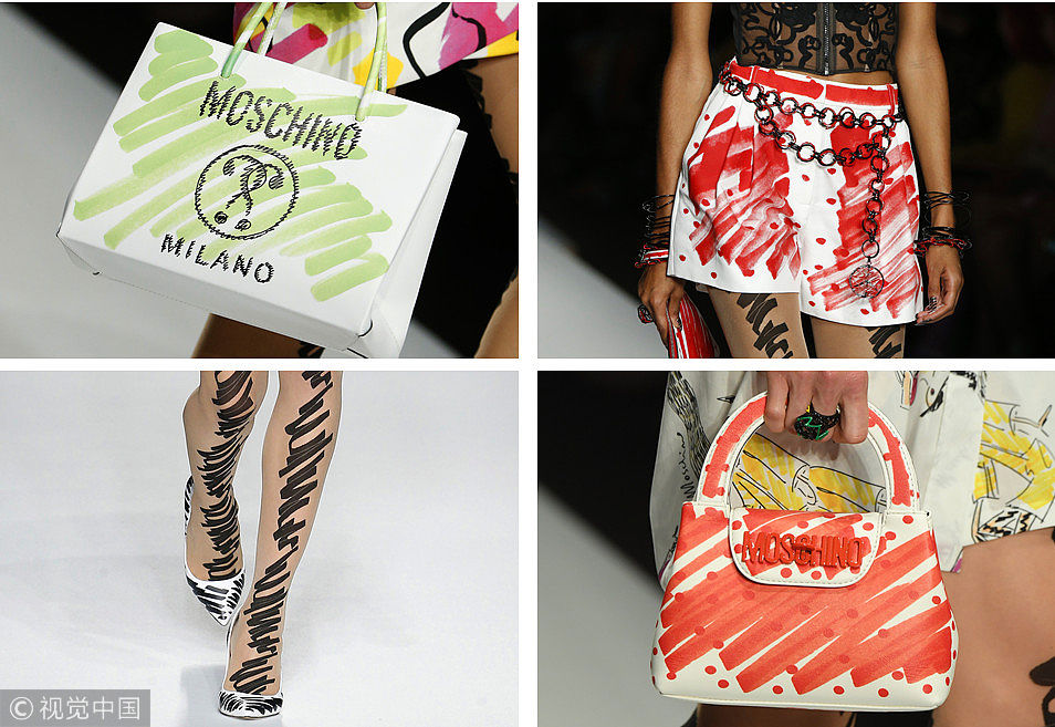 Moschino 2019春夏系列發(fā)布會(huì)于當(dāng)?shù)貢r(shí)間20日在米蘭舉行,滿場的涂鴉元素好玩的不得了,信手涂鴉在服飾和配飾上,瞬間放下束縛回歸本真,帶你追憶無憂無慮的孩童時(shí)代~ (圖片來源:視覺中國)