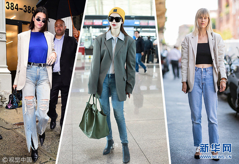 時(shí)尚圈流傳穿大不穿小早就不是什么新鮮事了,松垮肥大的“爸爸風(fēng)”西裝,搭配硬朗線條的牛仔褲,想必是每位直爽酷Girl的選擇。穿著舒適的同時(shí)又能不失時(shí)髦感,大氣又利落的穿搭風(fēng)格撐起氣場(chǎng)絕對(duì)不在話下! (圖片來(lái)源:視覺(jué)中國(guó))