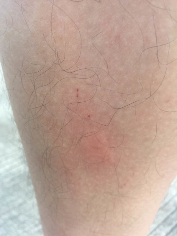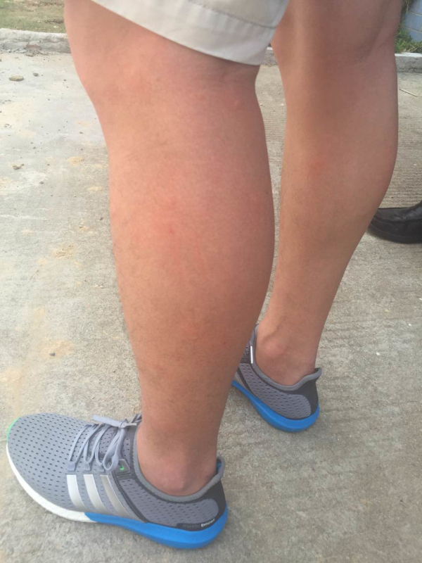 【直播君】:“哎喲”,飛哥大叫一聲。究竟是什么情況,原來正當(dāng)我們飛哥擺弄他的大玩具,準(zhǔn)備起飛獻(xiàn)給大家精彩的航拍照片之時(shí),意外發(fā)生了,一位不速之客爬上了飛哥性感的小腿,狠狠的給飛哥來了一口熱情之吻??纯催@傷口,大家現(xiàn)在知道鵬城眼小哥為了給大家?guī)淼谝皇钟嵪⒕烤褂卸嗝雌疵税?!此時(shí)此刻飛哥心里只想說一句話:“斌哥,咱這能算工傷不?”
