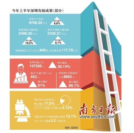 創(chuàng)新是深圳率先實現(xiàn)成功轉(zhuǎn)型的亮麗名片,是深圳率先實現(xiàn)動力轉(zhuǎn)換的制勝秘訣。如果說,作為特區(qū),深圳之“特”過去更多地體現(xiàn)在政策探路,那么,現(xiàn)在則更多體現(xiàn)在轉(zhuǎn)型創(chuàng)新。近年來,深圳經(jīng)濟特區(qū)把創(chuàng)新作為城市主導戰(zhàn)略,先后制定了全國首部國家創(chuàng)新型城市總體規(guī)劃和促進科技創(chuàng)新的地方性法規(guī),出臺自主創(chuàng)新“33條”、創(chuàng)新驅(qū)動發(fā)展“1+10”若干措施等一系列政策措施。經(jīng)過多年不懈的努力,深圳創(chuàng)新驅(qū)動發(fā)展取得了積極成效,創(chuàng)新正加快向高端前沿邁進,從跟跑、并跑向領跑躍升。在創(chuàng)新的驅(qū)動下,深圳實現(xiàn)了新常態(tài)下動力轉(zhuǎn)換和新一輪轉(zhuǎn)型升級,保持了有質(zhì)量、有效益、可持續(xù)的發(fā)展。事實為證:今年上半年,深圳全社會研發(fā)投入增長17.5%,占GDP比重進一步提升至4.12%;高新技術產(chǎn)業(yè)增加值增長12.1%,快于GDP增速3.3個百分點,呈現(xiàn)出“逐季攀高、質(zhì)量提升、結(jié)構(gòu)優(yōu)化、動力增強、趨勢向好”的鮮明特點。