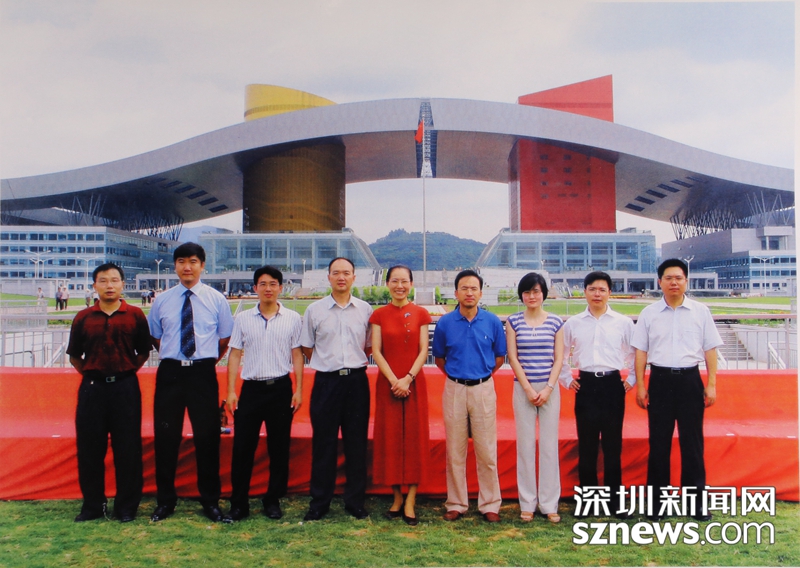 2004年5月,市民中心啟用前,陳一新(左五)與中心區(qū)開(kāi)發(fā)建設(shè)辦公室的同事合影