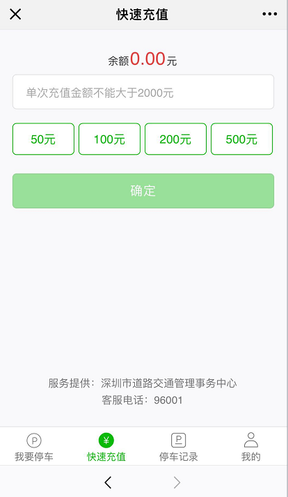 在這個界面還有“快速充值、停車記錄、我的”等導航入口