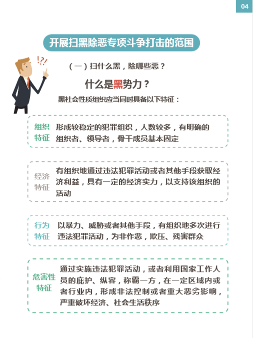 掃黑除惡普法“口袋書”是一本“普法書”,內(nèi)容共涉及11大類,分別是開展掃黑除惡專項(xiàng)斗爭(zhēng)的重大意義、總體要求、目標(biāo)任務(wù)、基本原則、打擊的范圍,以及掃黑除惡宣傳標(biāo)語、宣傳海報(bào),掃黑除惡進(jìn)行時(shí),深圳市掃黑除惡專項(xiàng)斗爭(zhēng)舉報(bào)獎(jiǎng)勵(lì)辦法,深圳市掃黑除惡辦關(guān)于市、區(qū)、各行業(yè)掃黑除惡專項(xiàng)斗爭(zhēng)舉報(bào)電話的公告,涉黑涉惡類犯罪相關(guān)罪名及法律條文?!翱诖鼤笔且槐尽懊靼讜?,以圖文相結(jié)合的方式,內(nèi)容提綱挈領(lǐng),語言精煉,通俗易懂,把掃黑除惡專項(xiàng)斗爭(zhēng)的有關(guān)法律、政策法規(guī)進(jìn)行準(zhǔn)確、細(xì)致的解讀,明明白白地交給市民。“口袋書”又是一本“方便書”,版式設(shè)計(jì)活潑,書體輕便,可隨身攜帶,方便閱讀。