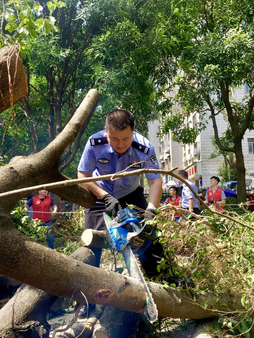 通心嶺派出所聯(lián)合街道辦等部門全力開展災(zāi)后生產(chǎn)生活秩序恢復(fù)工作,5個(gè)社區(qū)警務(wù)室積極發(fā)動(dòng)群防群治力量,開展路面清障工作。